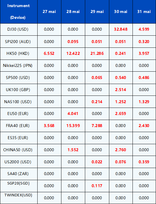 Veuillez noter que les données ci-dessus sont susceptibles d’être modifiées. Veuillez vous référer à plateforme de trading pour plus de détails.