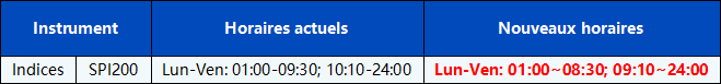Veuillez consulter le tableau ci-dessous pour connaître les horaires de tous les instruments concernés par ces changements :