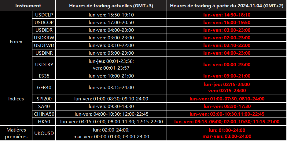 Veuillez noter qu’en raison de la fin de l’heure d’été aux États-Unis le 3 novembre 2024, des modifications seront apportées aux horaires de trading de PU Xtrader à partir du 4 novembre 2024.