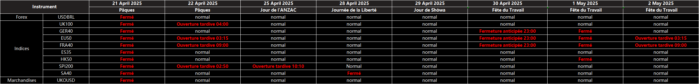 Veuillez noter que les heures de négociation et les heures des séances de marché de PU Xtrader seront affectées par les prochains congés d’avril et du 1er mai.